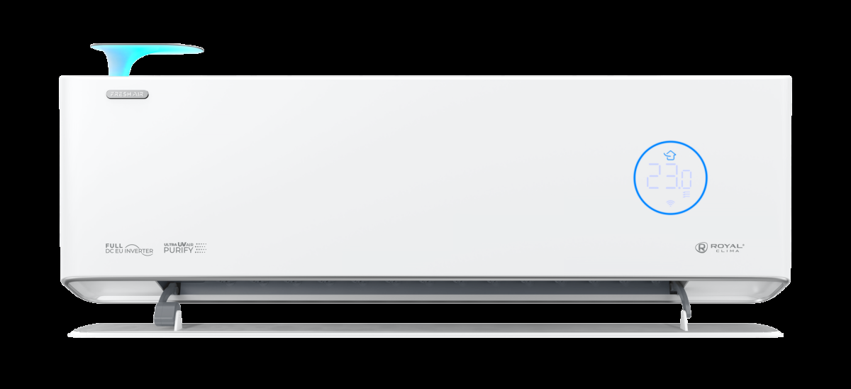 • Сплит-системы Royal Fresh оснащены ультрафиолетовой лампой, которая обеззараживает воздушный поток. Ультрафиолетовый свет способен эффективно и быстро уничтожать болезнетворные бактерии, споры плесени, вирусы гриппа и новые вирусы гриппа (SARS-COV-2). Ультрафиолетовый свет особенно важен, поскольку он обрабатывает не только воздух, проходящий через кондиционер, но и теплообменник. Влажная среда способствует росту микроорганизмов, которые являются возбудителями многих серьезных заболеваний.